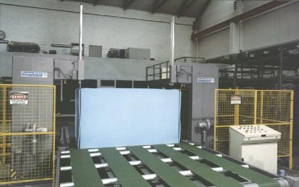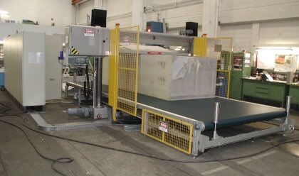 Peeling machine R22 E cut reboned foam blocks into long thin foils (or rolls) on confined area