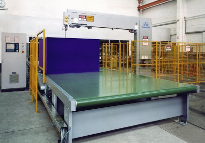 Peeling machine R22/88 cut PU foam blocks into long thin foils (or rolls) on confined area